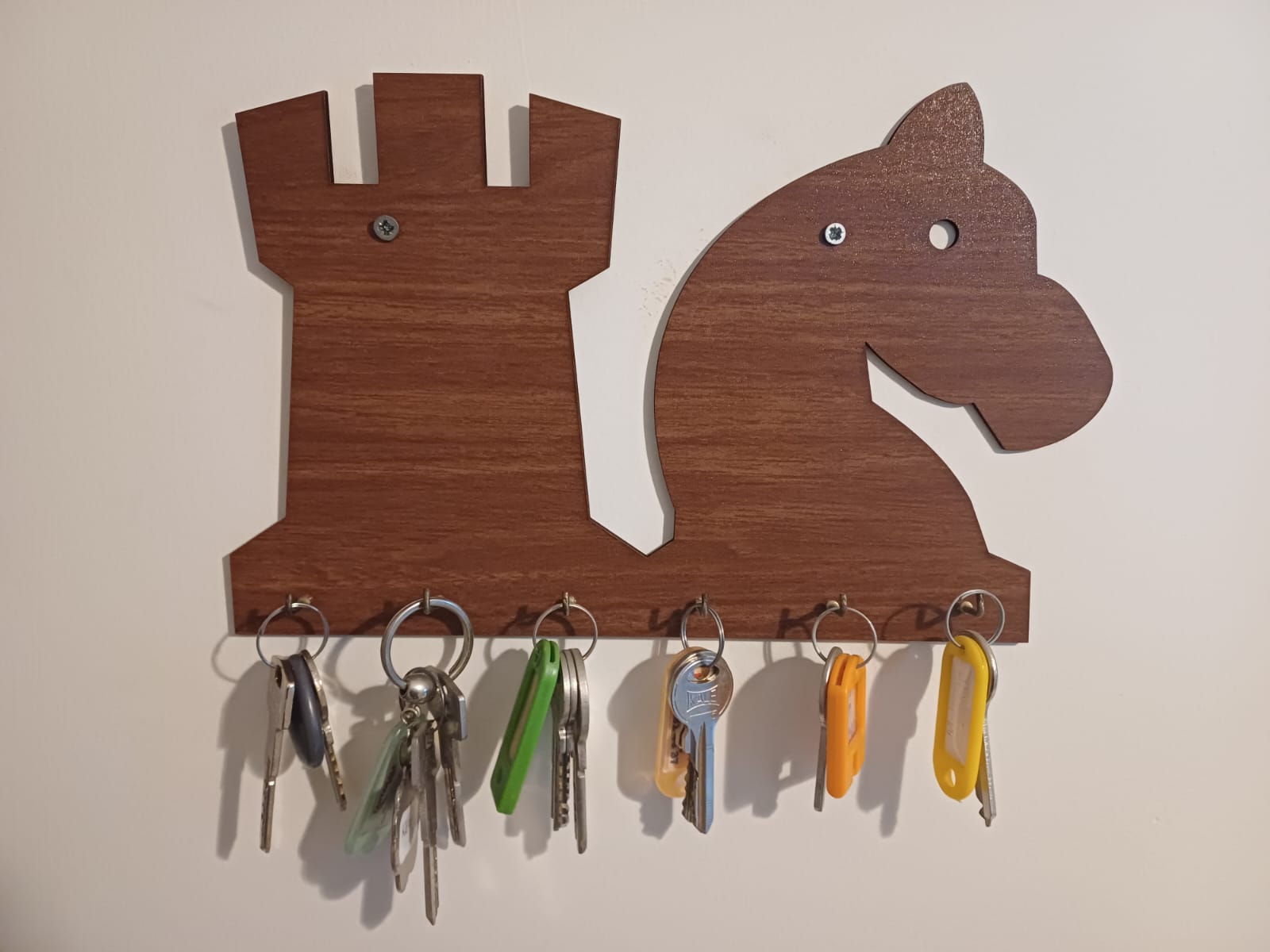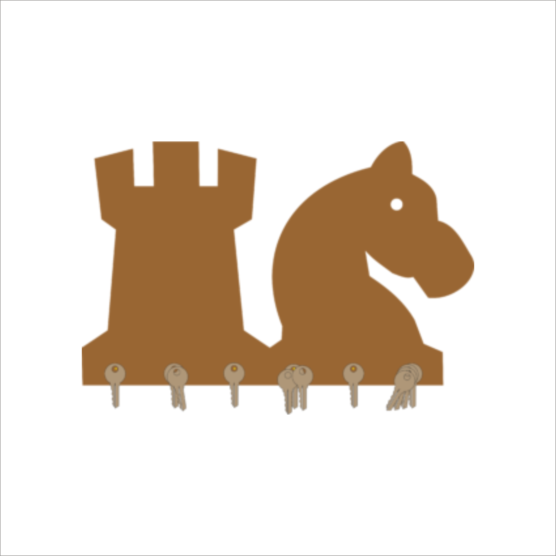 3 mm koyu renk ahşap görünümlü MDF üzerine lazer kesim. 28×17,5 cm. 6 adet anahtar yeri